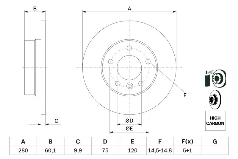 • Disc dimensions (diameter, thickness, height, center bore)