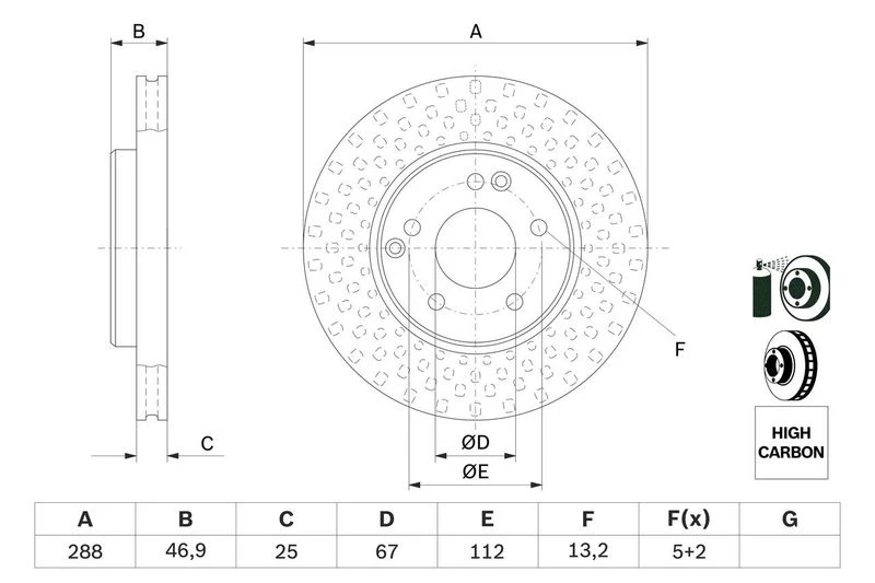 • Disc dimensions (diameter, thickness, height, center bore)