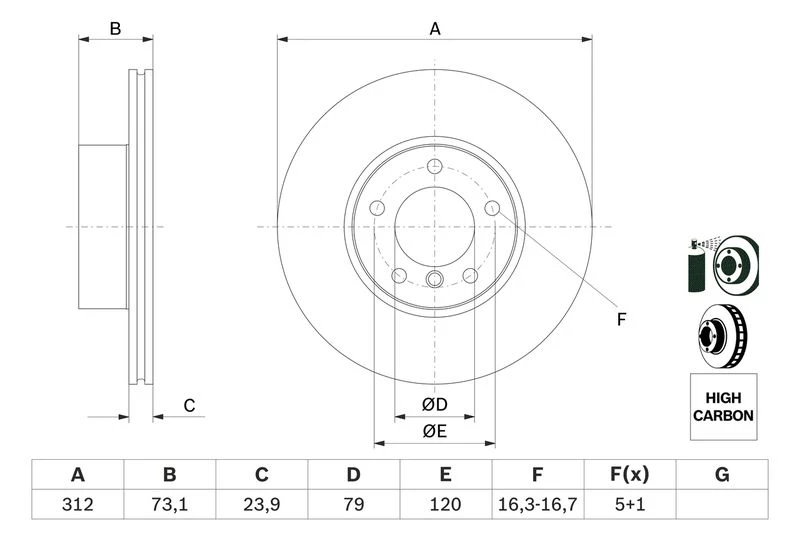 Disc dimensions (diameter, thickness, height, center bore)
