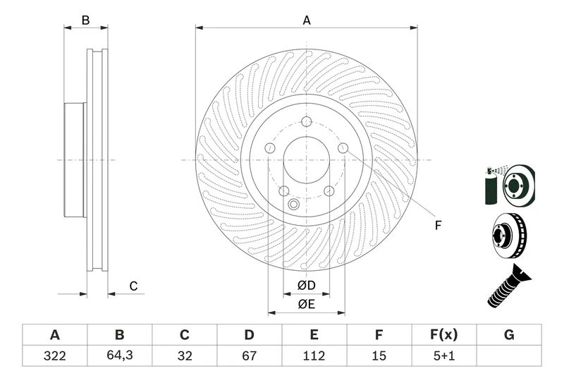 Disc dimensions (diameter, thickness, height, center bore)