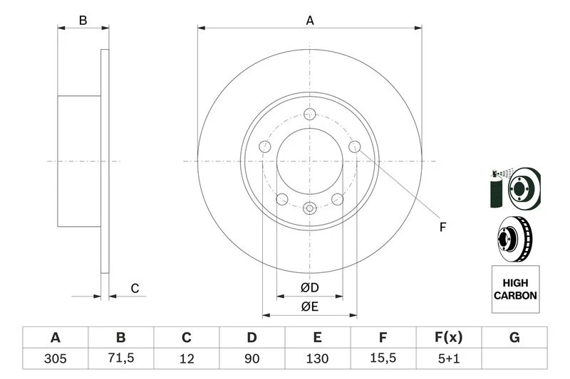 • Disc dimensions (diameter, thickness, height, center bore)
