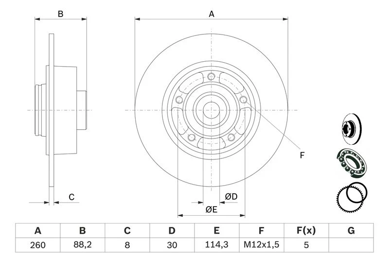 Disc dimensions (diameter, thickness, height, center bore)