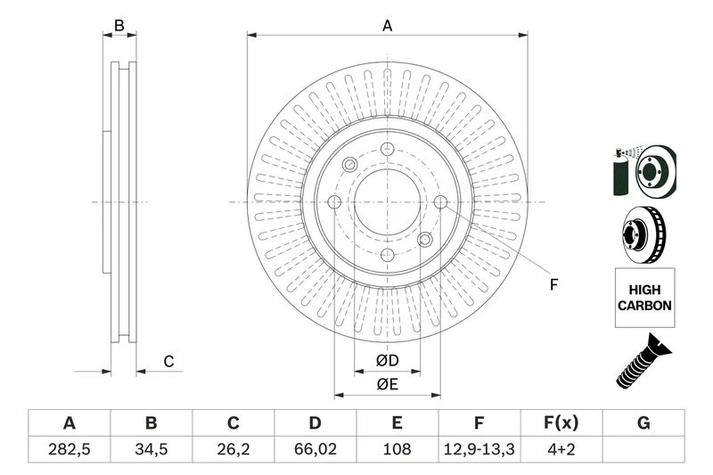 • Disc dimensions (diameter, thickness, height, center bore)