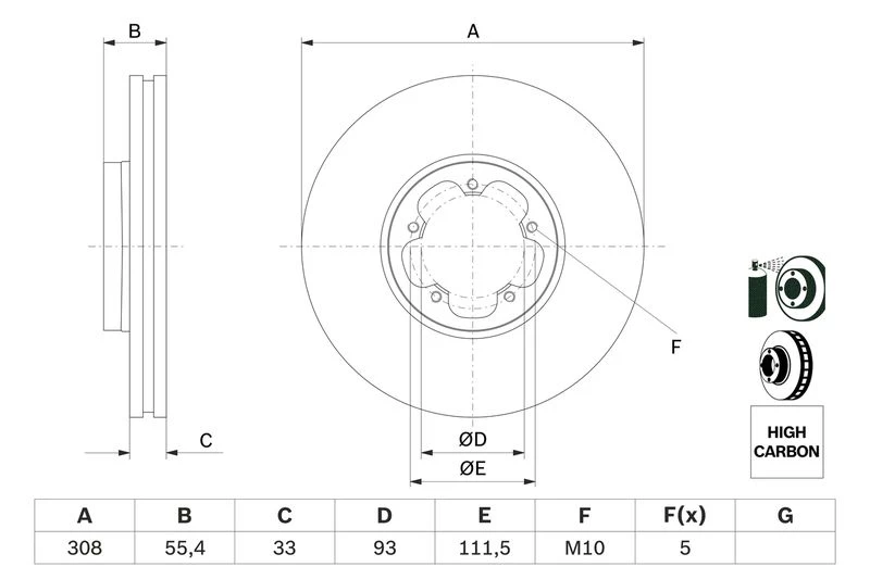 • Disc dimensions (diameter, thickness, height, center bore)