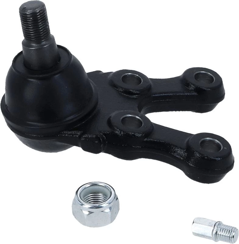 A ball joint is a critical component of the suspension system that connects the control arm to the steering knuckle. It functions like a pivot point, allowing the front wheels to move up and down with the suspension while also turning left and right for steering. This ensures smooth handling, steering precision, and proper alignment.