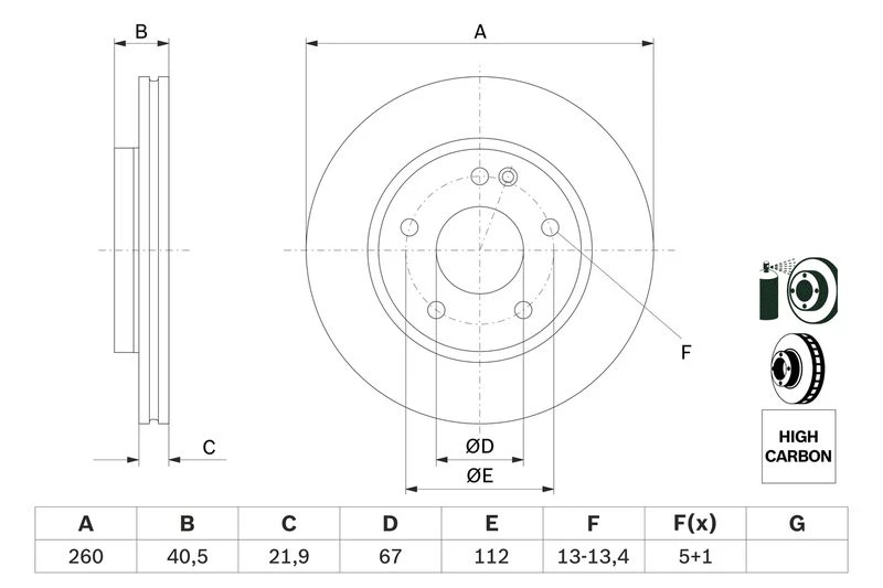 Disc dimensions (diameter, thickness, height, center bore)