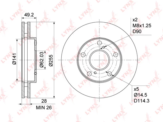 Disc dimensions (diameter, thickness, height, center bore)