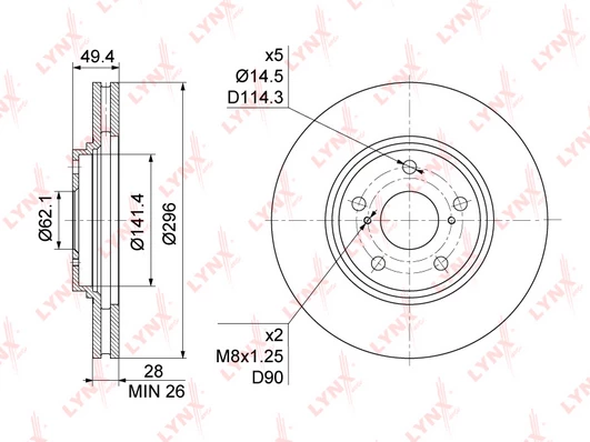 Disc dimensions (diameter, thickness, height, center bore)