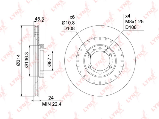 Bolt hole circle Ø (mm) 108