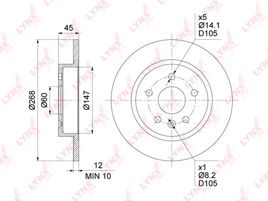 Bolt hole circle Ø (mm) 105